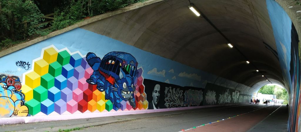 The parkrun was good. It started on the bridge, crosses into England (the only one to extend across 2 countries (and 3 counties, apparently)) and then finishes in the ‘street art’ tunnel, which is very good if it rains, of course.