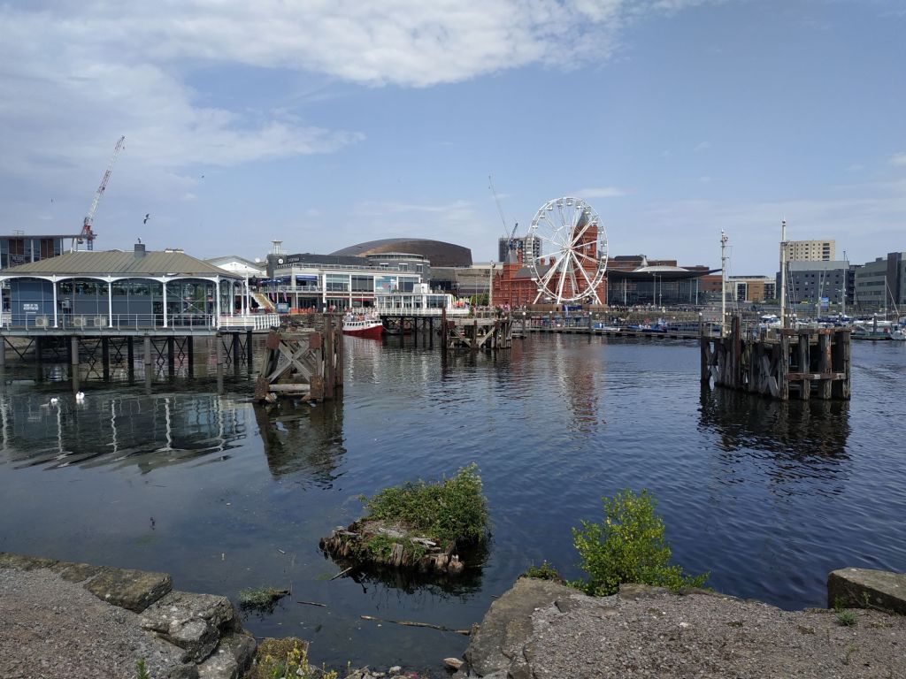 Starting late we decided against a coffee stop in Newport in favour of cracking on to Cardiff Bay mainly adjacent to the A48 to make up time. It was overcast and humid. The Bay area was busy as it was the day before Cardiff Triathlon, which is a great setting for the event.