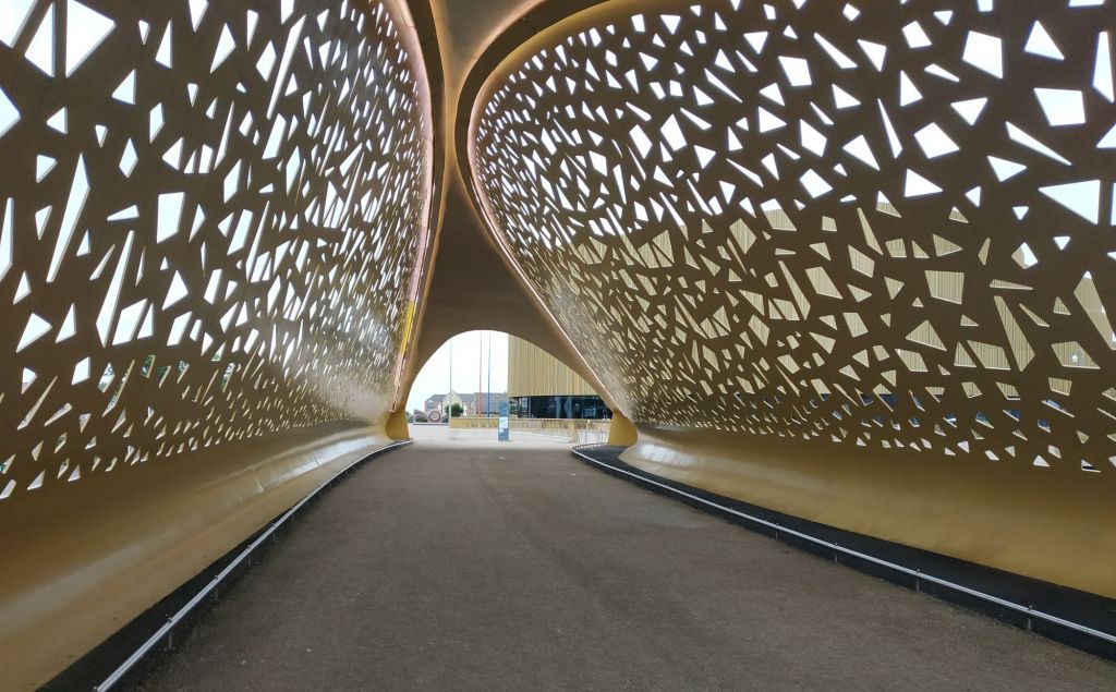 I followed Sustrans 4 out of Llanelli on the waterfront where it was as blustery as it was when I was last here for the marathon in 2019, but thankfully not as cold. This time I saw the monument to Phil Bennett, arguably Wales greatest rugby player, under the rugby posts from the famous Stradey Park which was sold for housing in 2008.