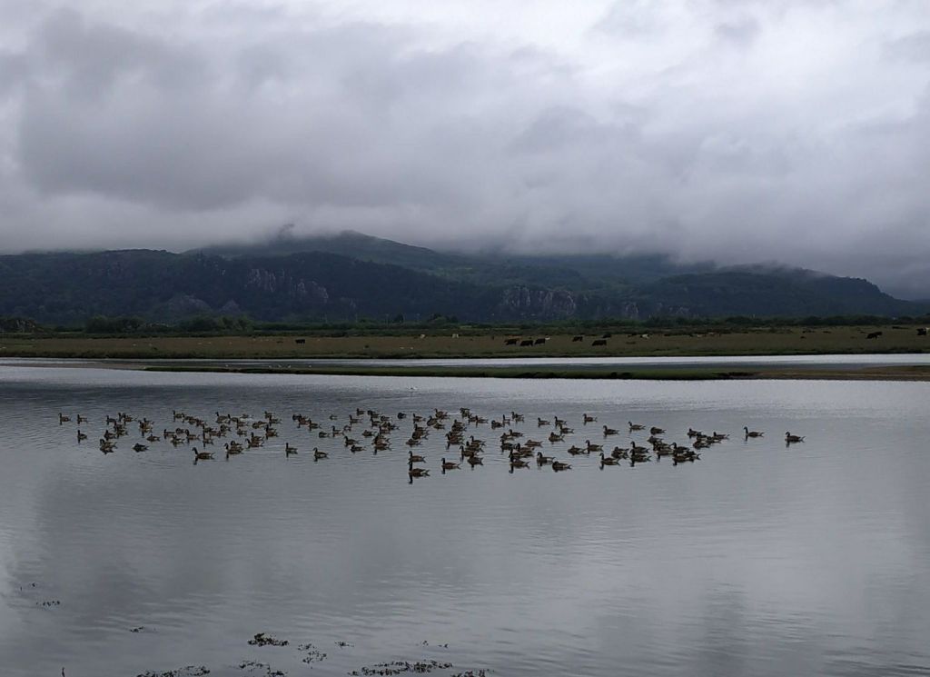 Looking inland from the causeway there were a large gaggle of Canadian geese on the river Glaslyn.