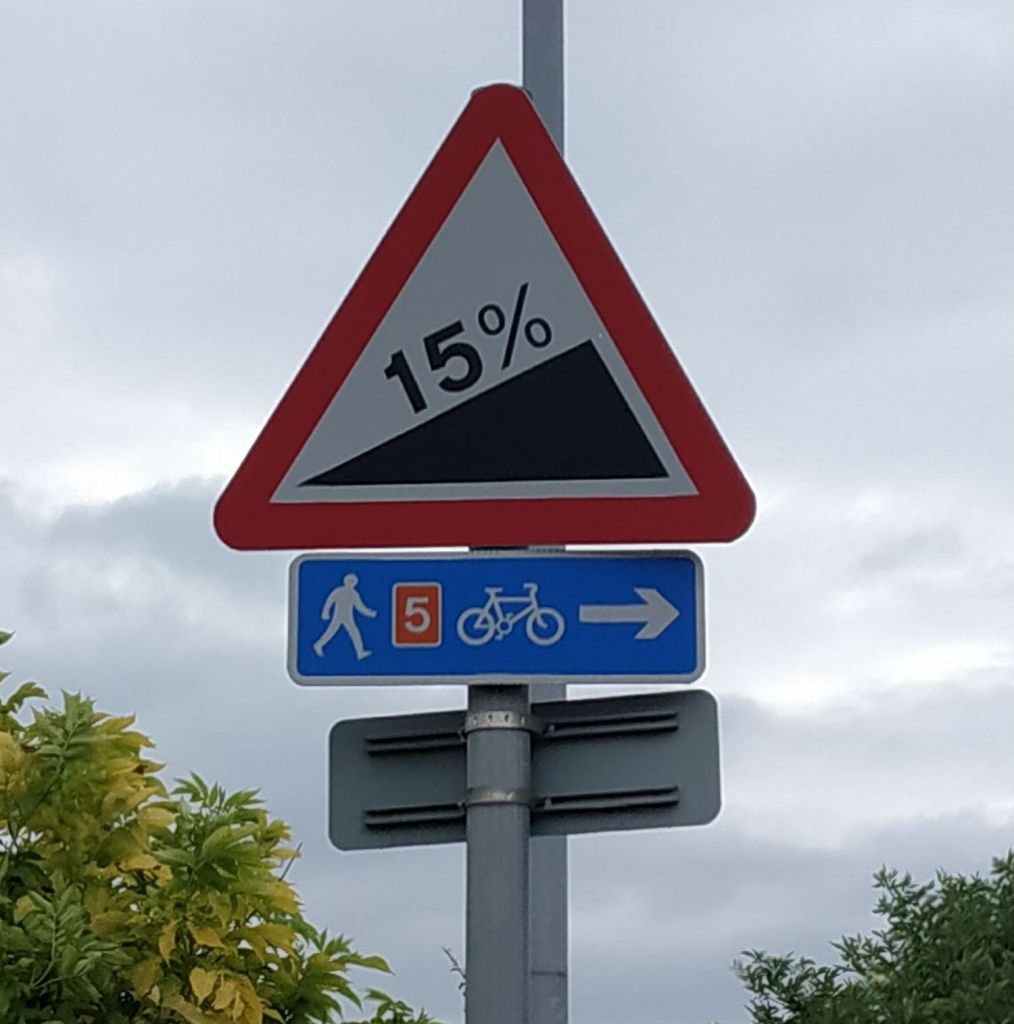 Being a cycle route, I was surprised to see a 15% gradient sign, but given that my legs had recovered a bit it wasn’t too taxing. I was also surprised when an electric bike caught and overtook me. Apparently, “it’s easier with a bit of electric”, which nearly lit a fuse in me but thinking better of it actually made me question whether easy is actually better – discuss.