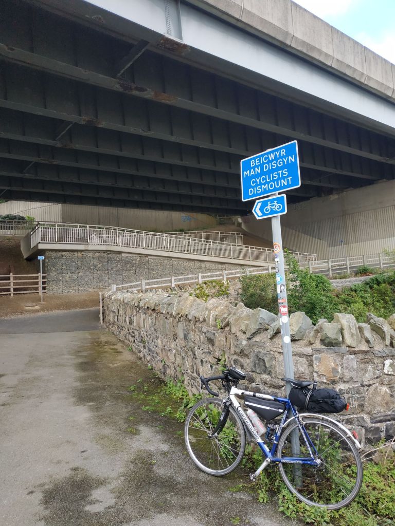 Waking early again, I was keen to leave the soulless hotel and get started while it was dry. However I seemed to lose my sense of direction leaving Bangor and inadvertently ended up on the A55 North Wales Expressway, with a tailwind, cycling between the white line and the verge @ 20+ mph. Exiting at the first opportunity, I luckily found myself on Sustrans 5, the main cycle route across north Wales. This ran alongside and went over and under the busy A55 almost to Conwy. Impressive cycling infrastructure.
