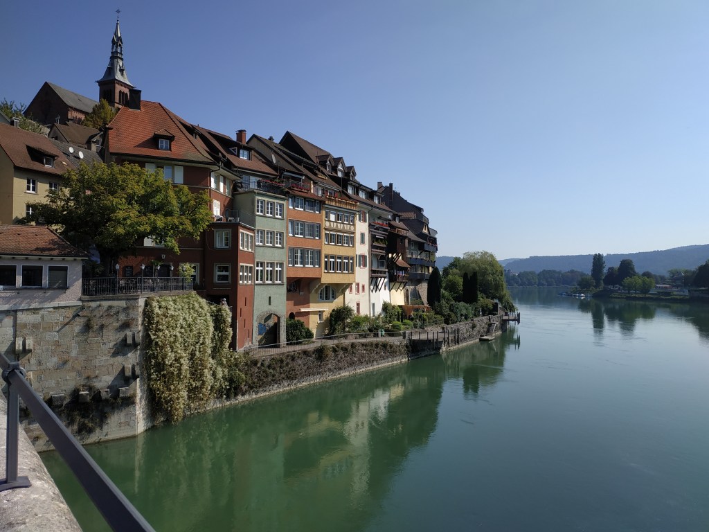 The route was now entering the traditional German and Swiss villages and towns perched on the banks of the Rhine, some of which are actually split in two with German and Swiss parts. Some are joined by covered bridges. What these places must be like on national sporting occasions ?