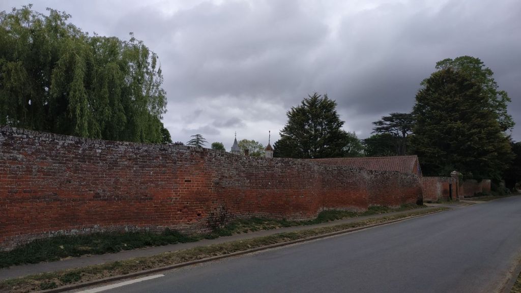 On reaching Easton I came across the crinkle crankle wall, also known as a crinkum rankum, sinusoidal, serpentine, ribbon or wavy wall, built with alternating curves. The style originated in Ancient Egypt, but is also found in Suffolk.
