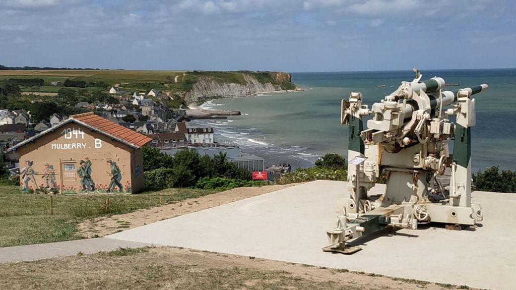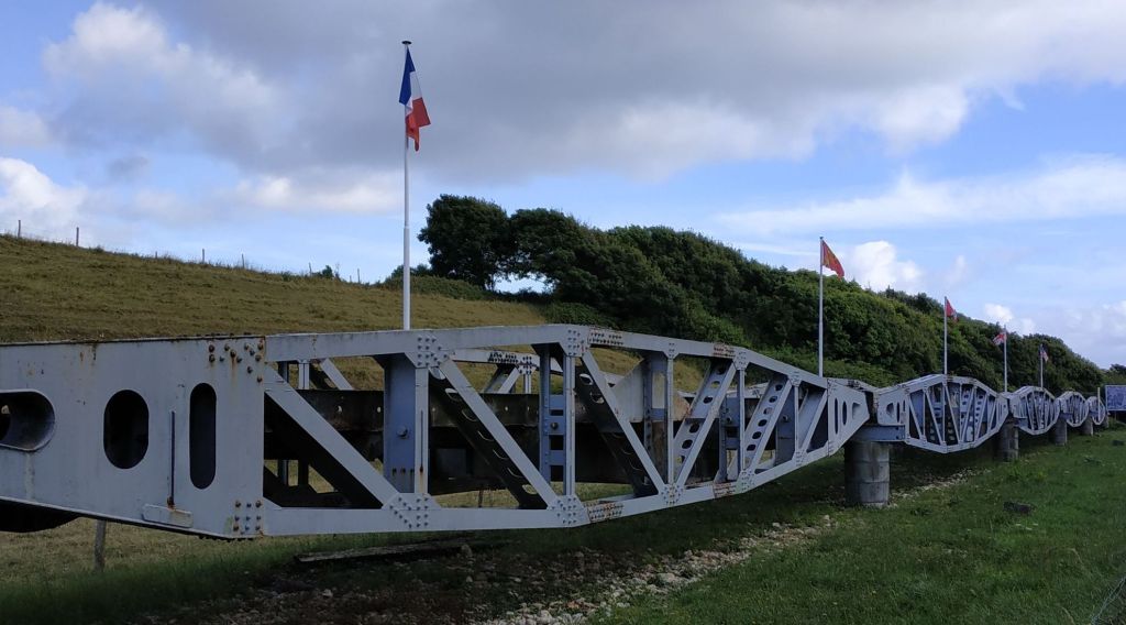 As a couple of cyclists had mentioned at breakfast there was a steep hill coming out of Arromanche-les-Bains, as they had come down it yesterday from Caen. The first section of cobbles seemed ok and as I turned the corner I sill had one cog left. But then it turned left and ‘kicked up’ again to the 360 degree cinema. I was straight into my Granny gear (I do hope I haven’t offended anyone here) and at the point of no return. This was my ‘Muur’ or ‘Angliru’. I had to keep going as stopping was not an option and it would have been embarrassing to fall off in front of schoolkids and tourists at the top. Anyway I made it and the view was great.