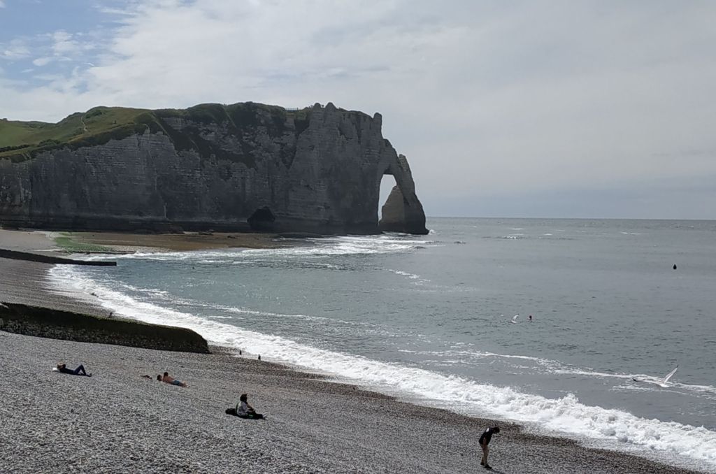 Approaching Eterat there were a few roads closed and officious gendarmerie enforcing it. Finally making it into town it transpired that there was an Olympic torch proceesion. I didn’t see The Flame in 2012, as I wasn’t really interested, but given that it was just half an hour away, the sun was shining and someone had given me a free bag, then I thought that I’d stay. I also thought that I had managed find out that it was starting on the cliffs over the Faise d’Aval @4:30pm descending @2km to the seafront – what a spectacular backdrop that would provide.