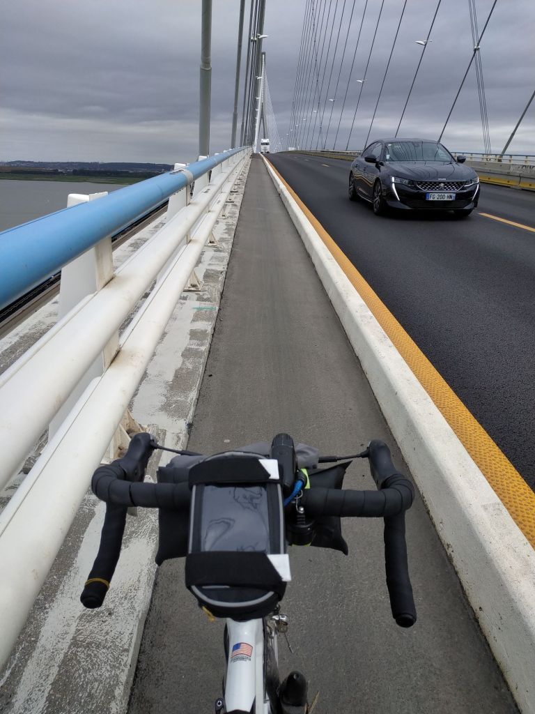 The next challenge was to get over Le Pont de Normandie, a 2km cable stayed bridge crossing the River Seine to Le Havre.
