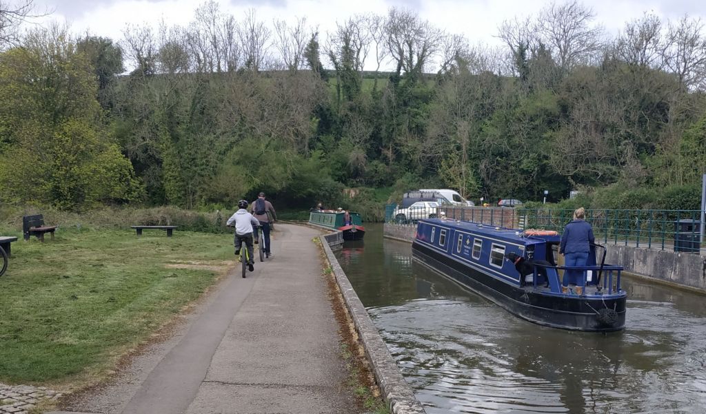 With an earlier breakfast, I left the Bear Hotel @8:15am. Starting at the summit of the K&A canal from Devizes Wharf meant that it would be downhill to the end, except that most of that came in the first 2 miles as I dropped 72m passing 16 locks as part of the spectacular Caen flight, the longest continuous straight flight of locks in the country (and part of the 29 locks in the Devizes flight). They each have side pounds, holding a million gallons of water. And then at the bottom there were 208 solar panels apparently, (I didn’t count them) in a field powering a pumping station to transfer water back up to the summit pound.