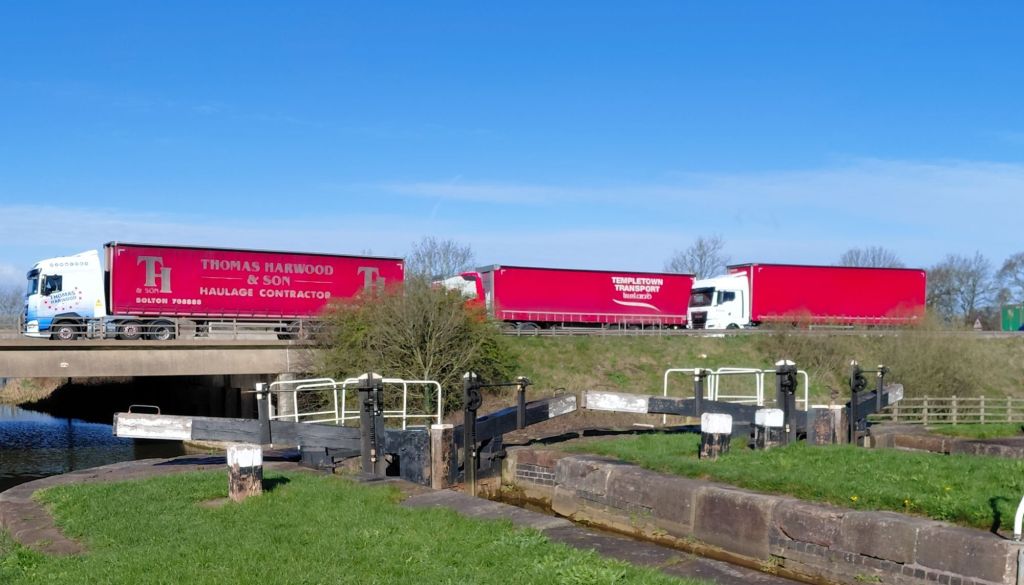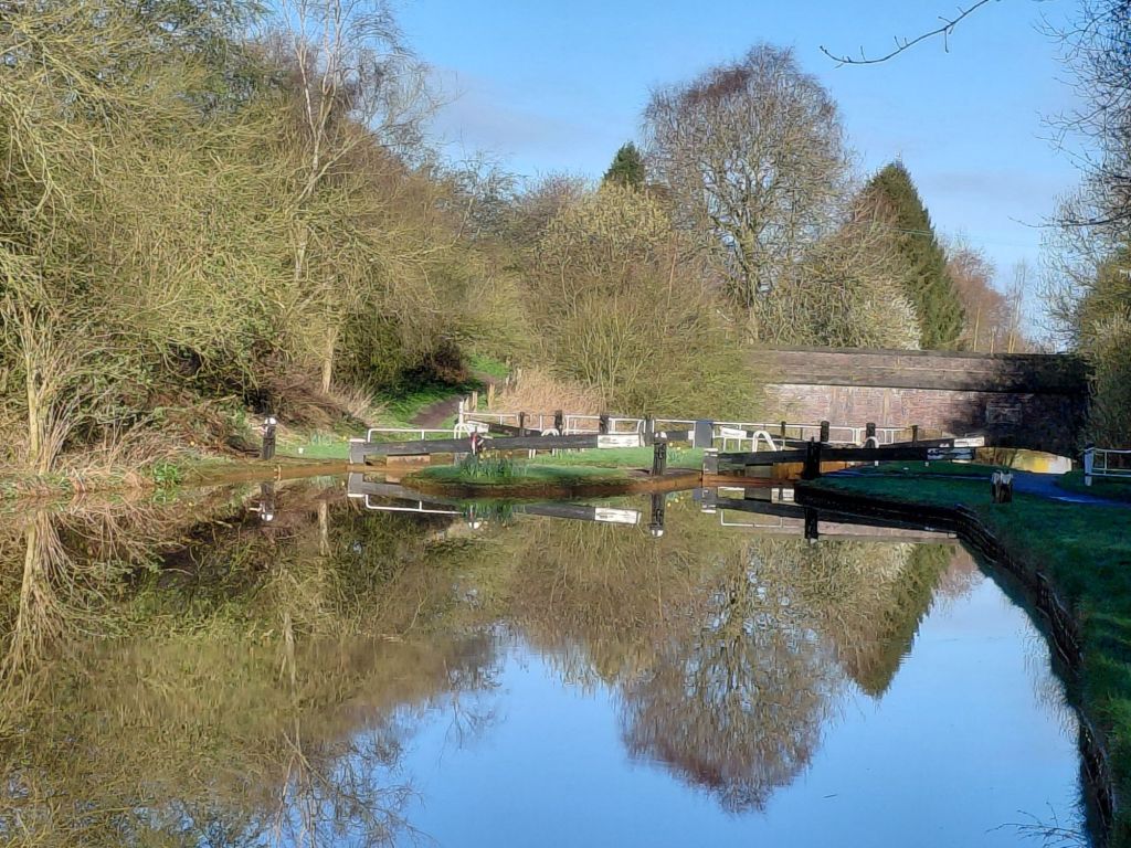 With the sun is shining it was a lovely morning for a run / jog / plod, passing the junction with the Macclesfield canal, double locks and going under the M6 motorway.