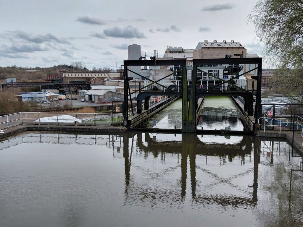 I was now in the final quarter of the day and approaching the Anderton Boat Lift which transfers boats from the canal down onto the river Weaver. Built in 1875 (and admiring it over some of my remaining meal deal) it’s an incredible structure.