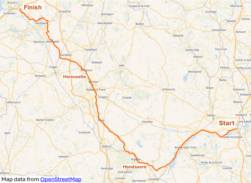 After a very long, wet and miserable winter in the UK, it’s nice to be starting out on another year of running and cycling trips. In preparation for the LDWA Hunnypot 100 at the end of May, I need to get some miles in my legs, and hence this 93-mile, 3-day run along the Trent and Mersey (T&M) canal will be good training.