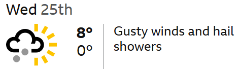 So aside from booking a couple of nights accommodation, I have been a bit relaxed about this one, until I took a look at the weather forecast. Oh well, we all have a choice !